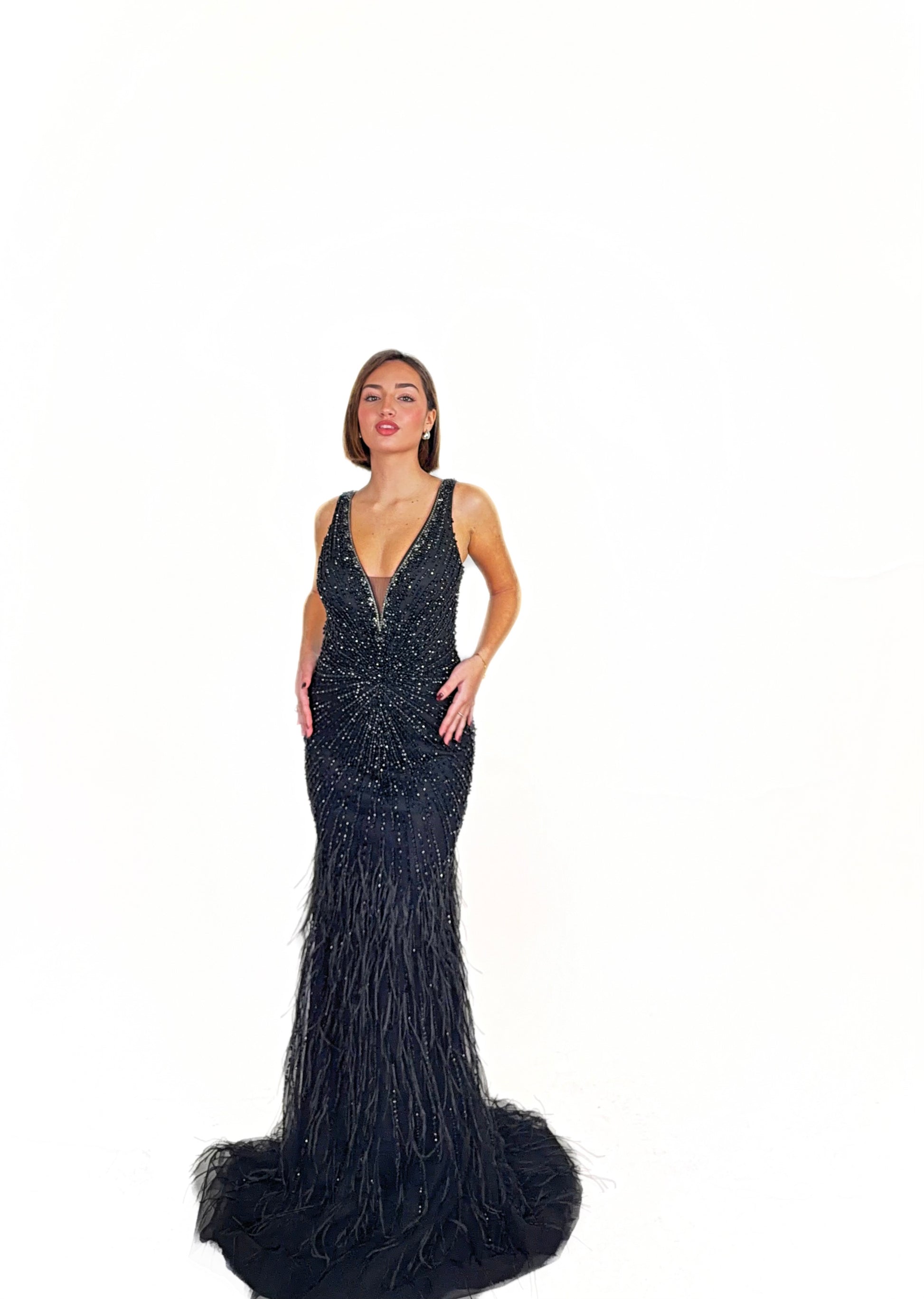 Seduzione pura, eleganza assoluta, presenza scenica inarrestabile: Black Swan Couture è l’abito da sera che incarna l’essenza più raffinata dell’alta moda. Un capolavoro di sartoria, pensato per illuminare passerelle, gala e serate in cui ogni dettaglio deve comunicare lusso e perfezione.