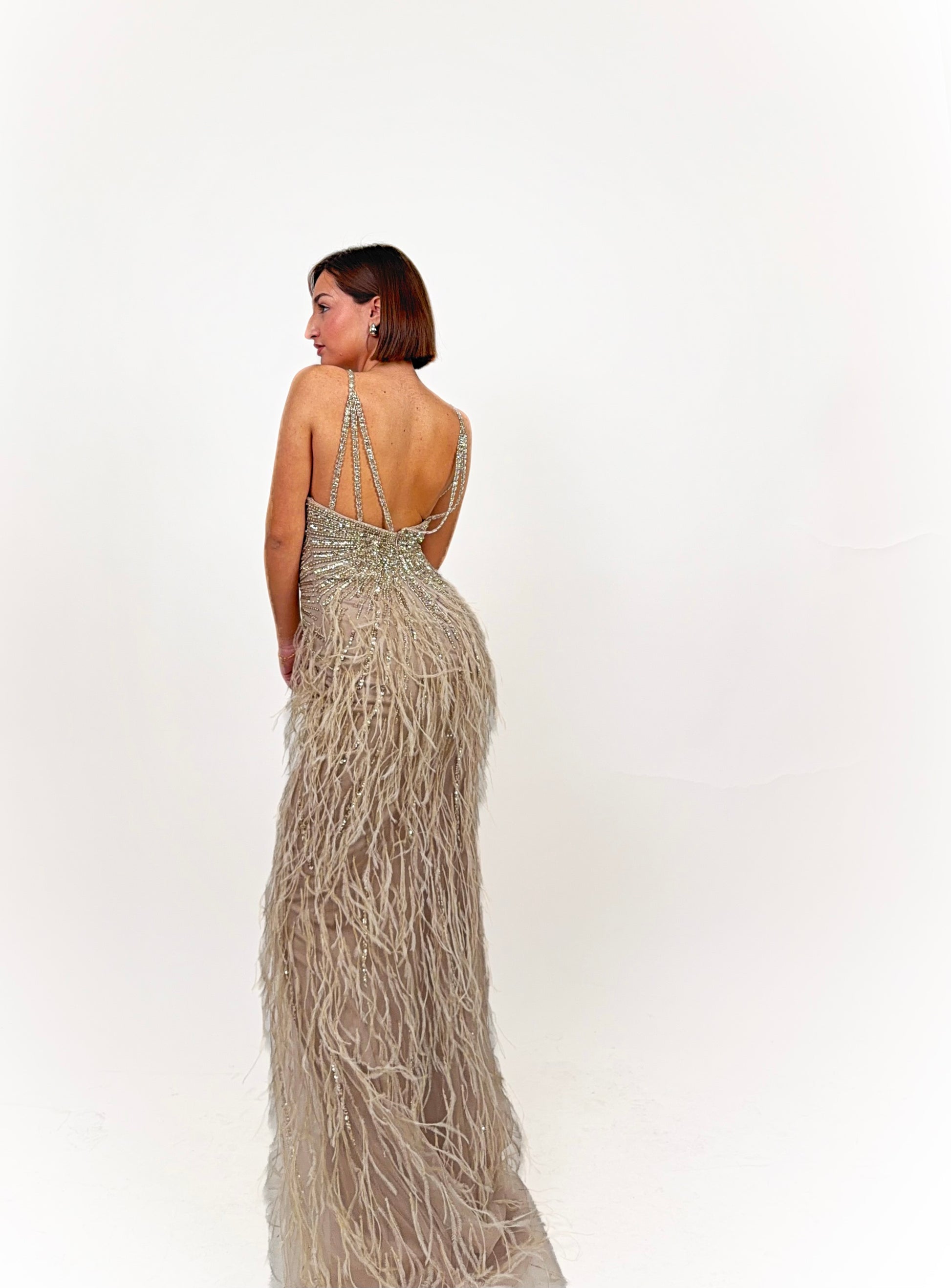 ✔️ Possibilità di modificare spacco, ampiezza gonna, disposizione piume