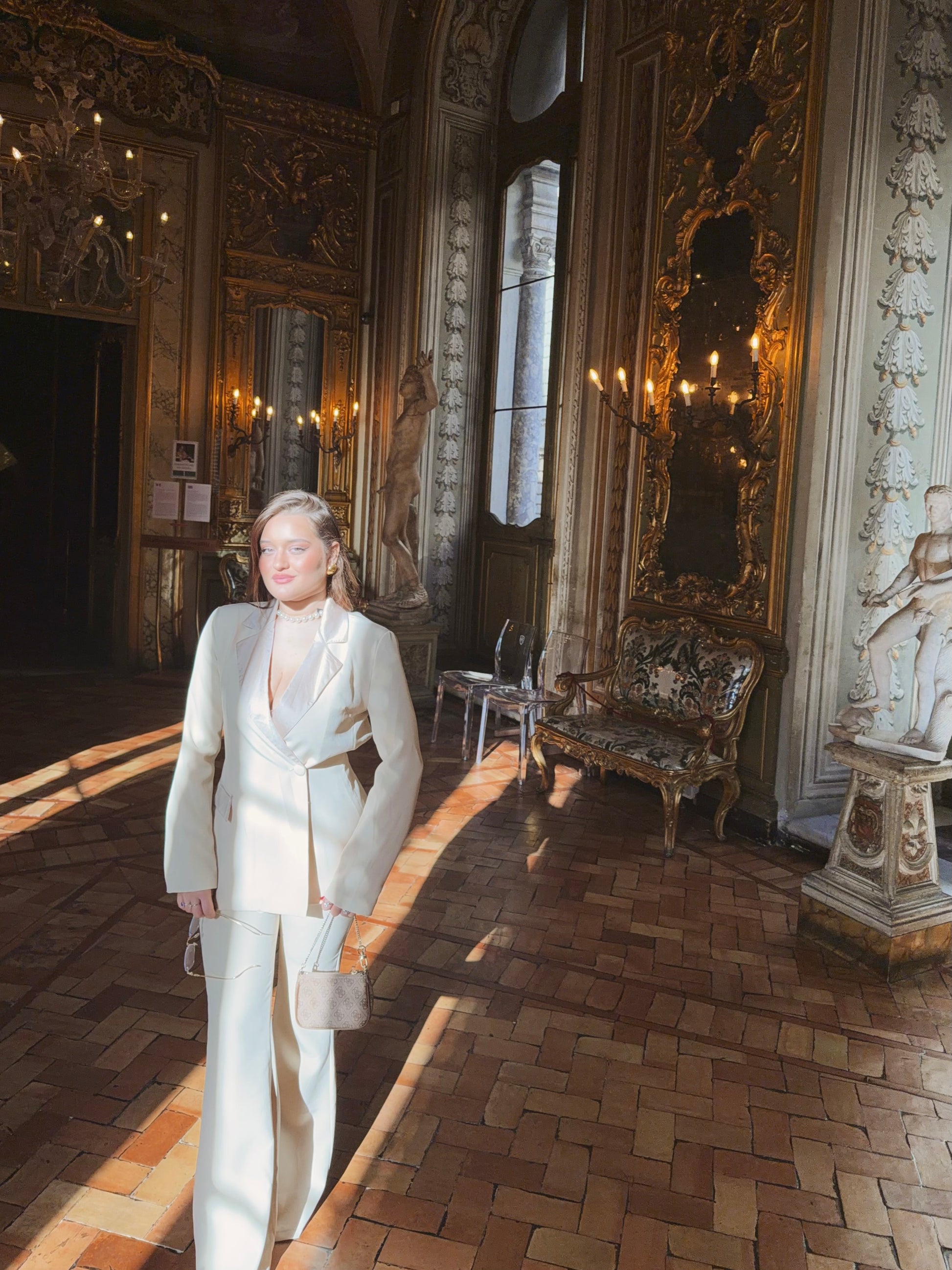Il Tailleur Doria è un completo sartoriale dall’eleganza senza tempo, ispirato ai grandi saloni storici di Roma. Realizzato in una raffinata tonalità avorio caldo, illumina la silhouette con naturalezza e raffinatezza.