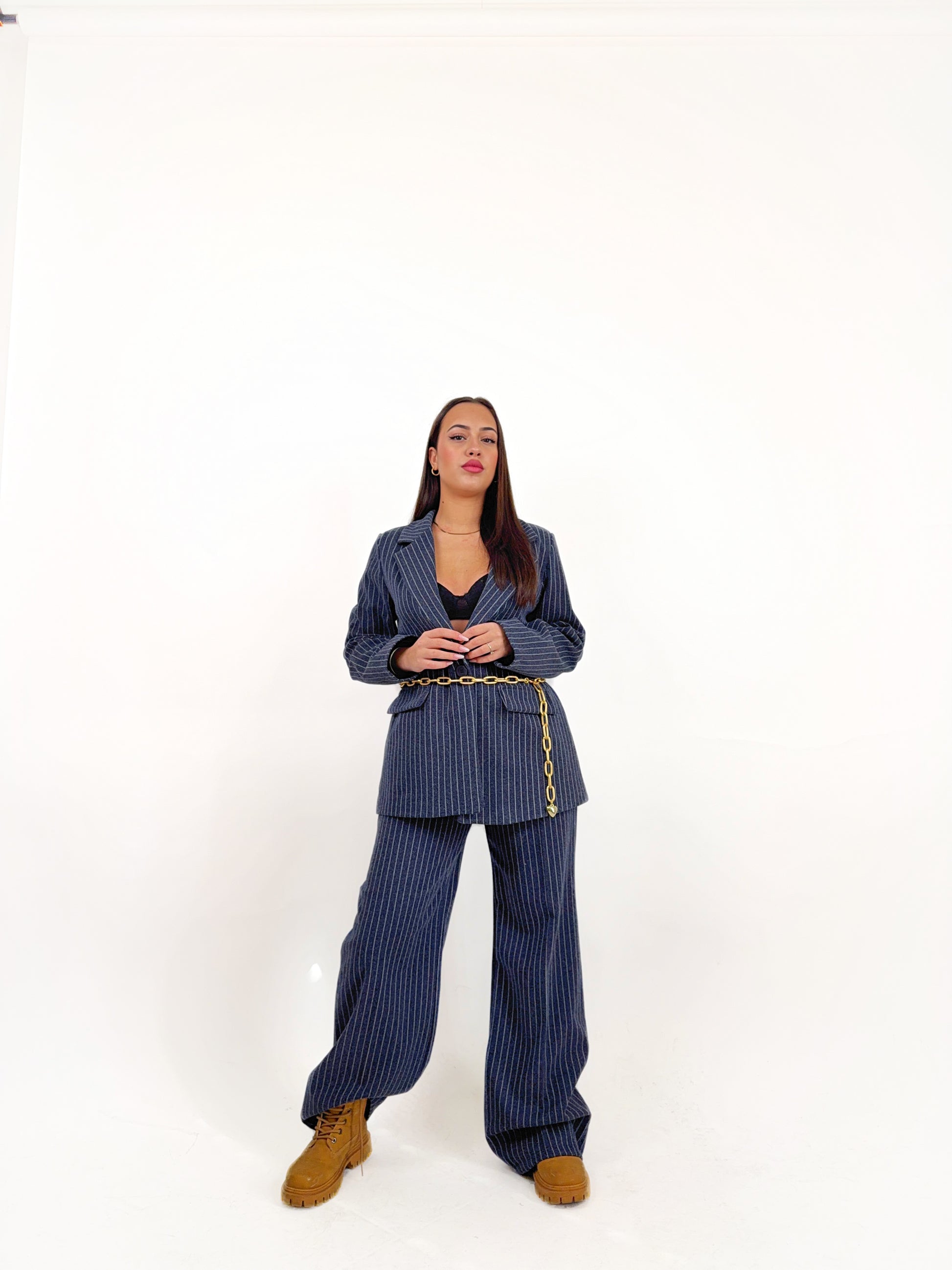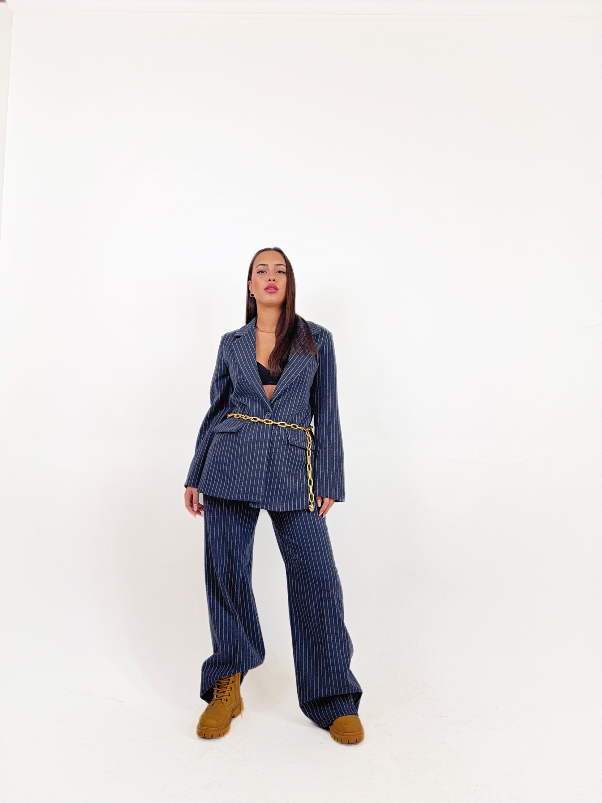 Il Power Pinstripe è il tailleur che trasforma ogni look in un’affermazione di stile.