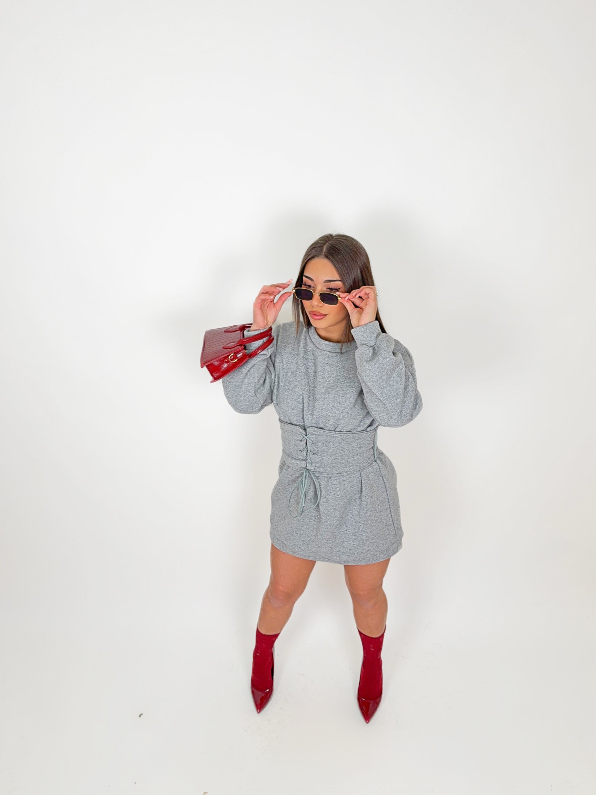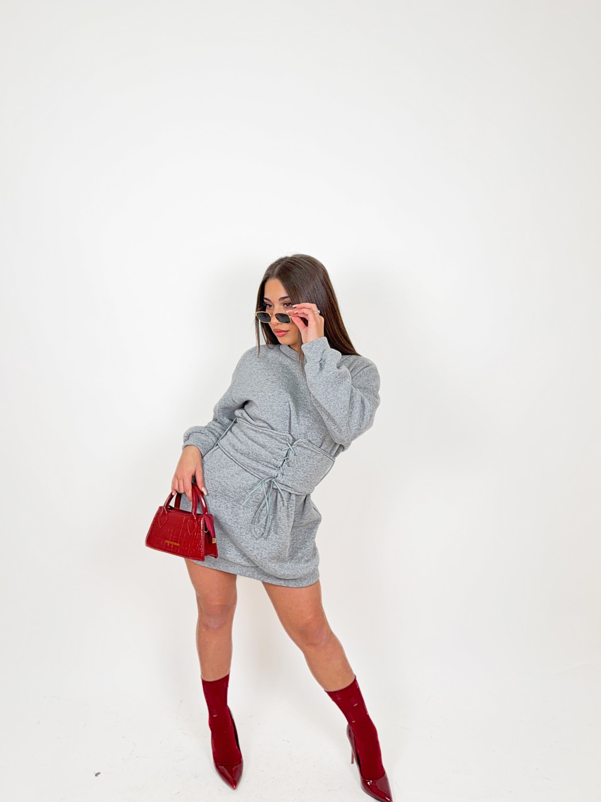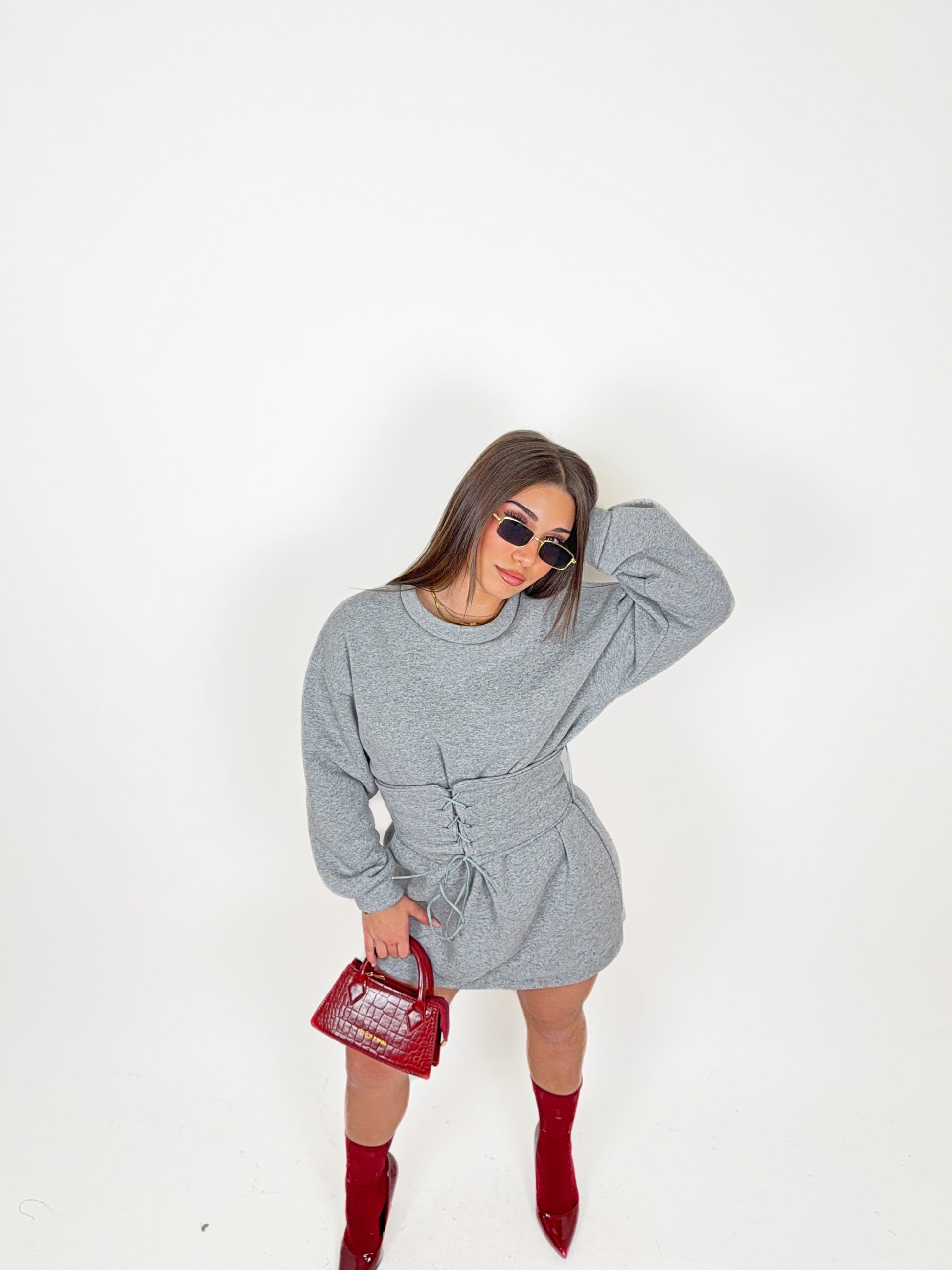 Comodità e stile si incontrano in questo mini dress felpato con design a corsetto.