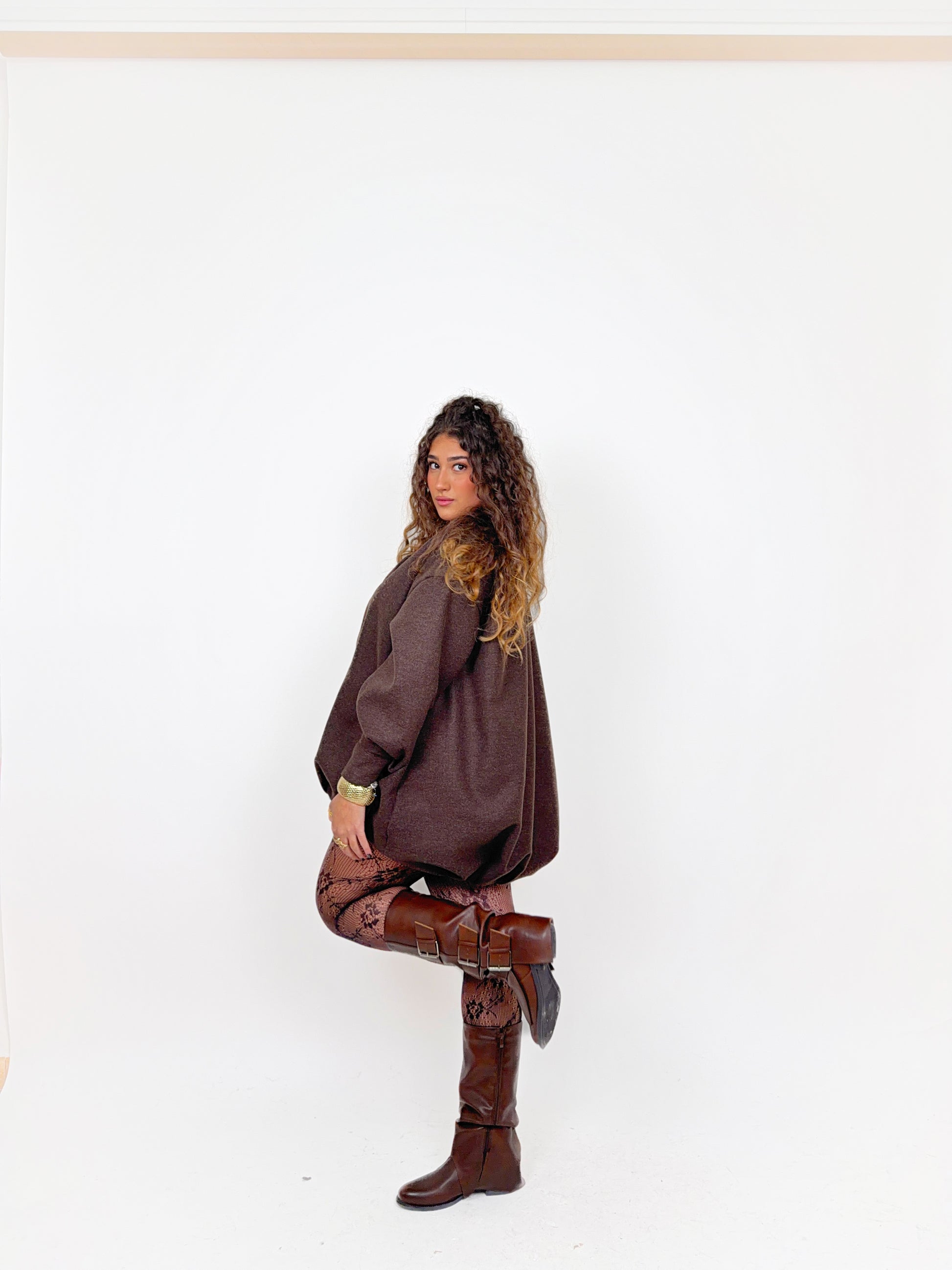La nostra giacca oversize “bubble” è il capo protagonista della stagione: morbida, strutturata e con un volume moderno che regala subito un look sofisticato e ultra fashion.