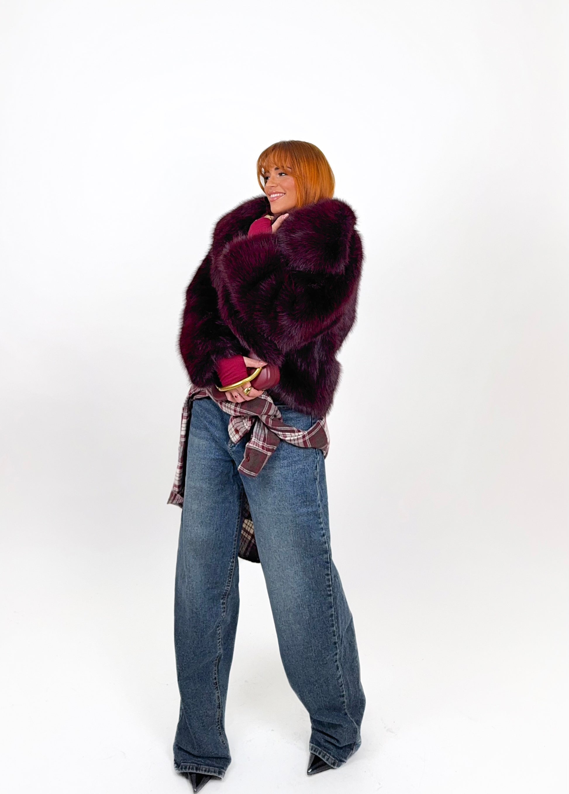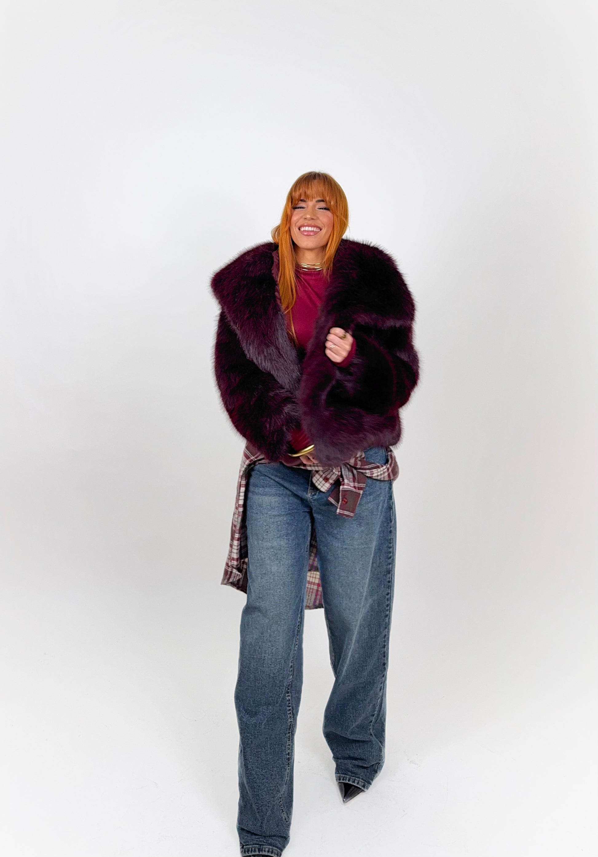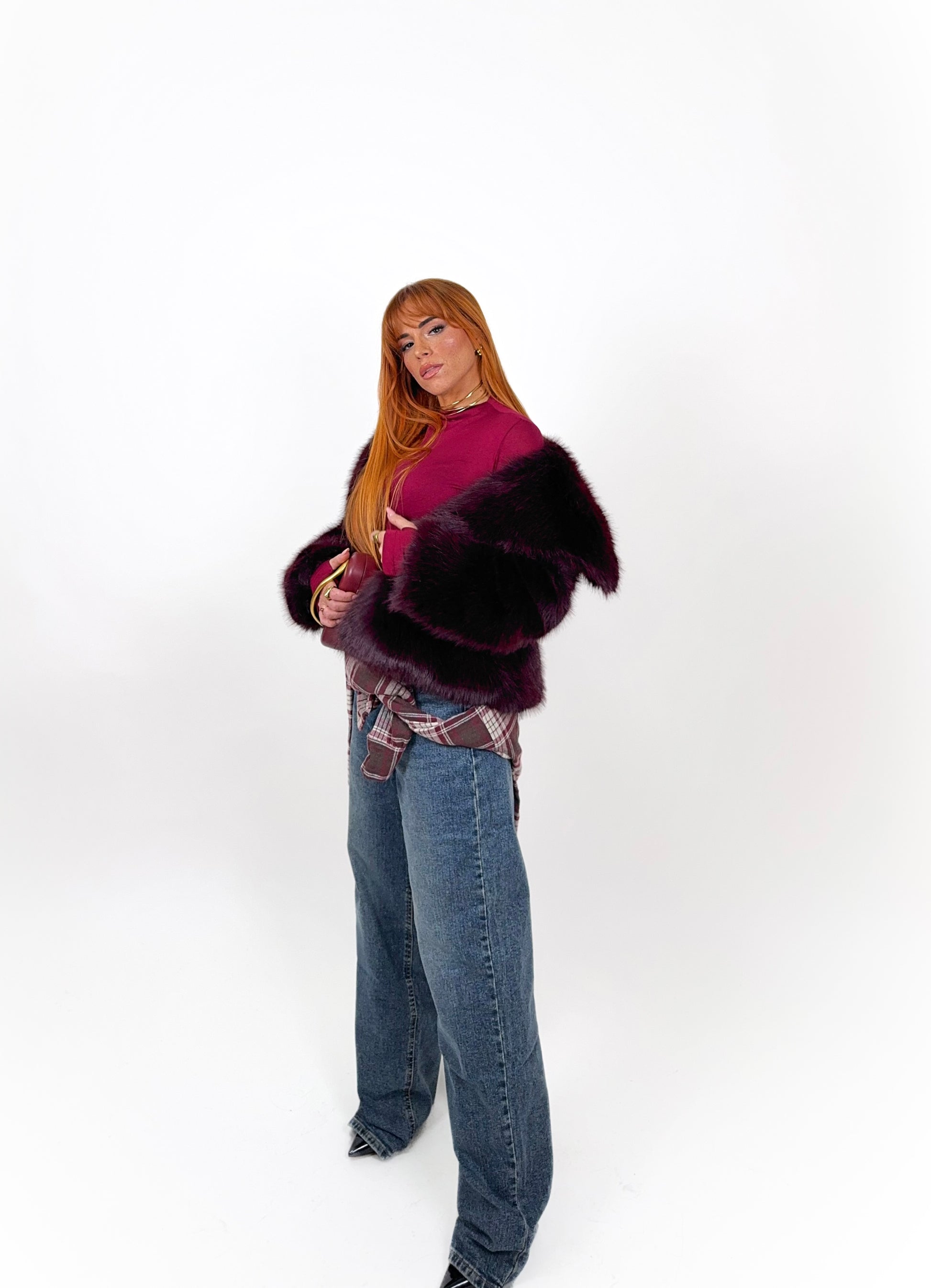 Pelliccia (non sintetica) in colorazione bordò, morbida e super avvolgente.