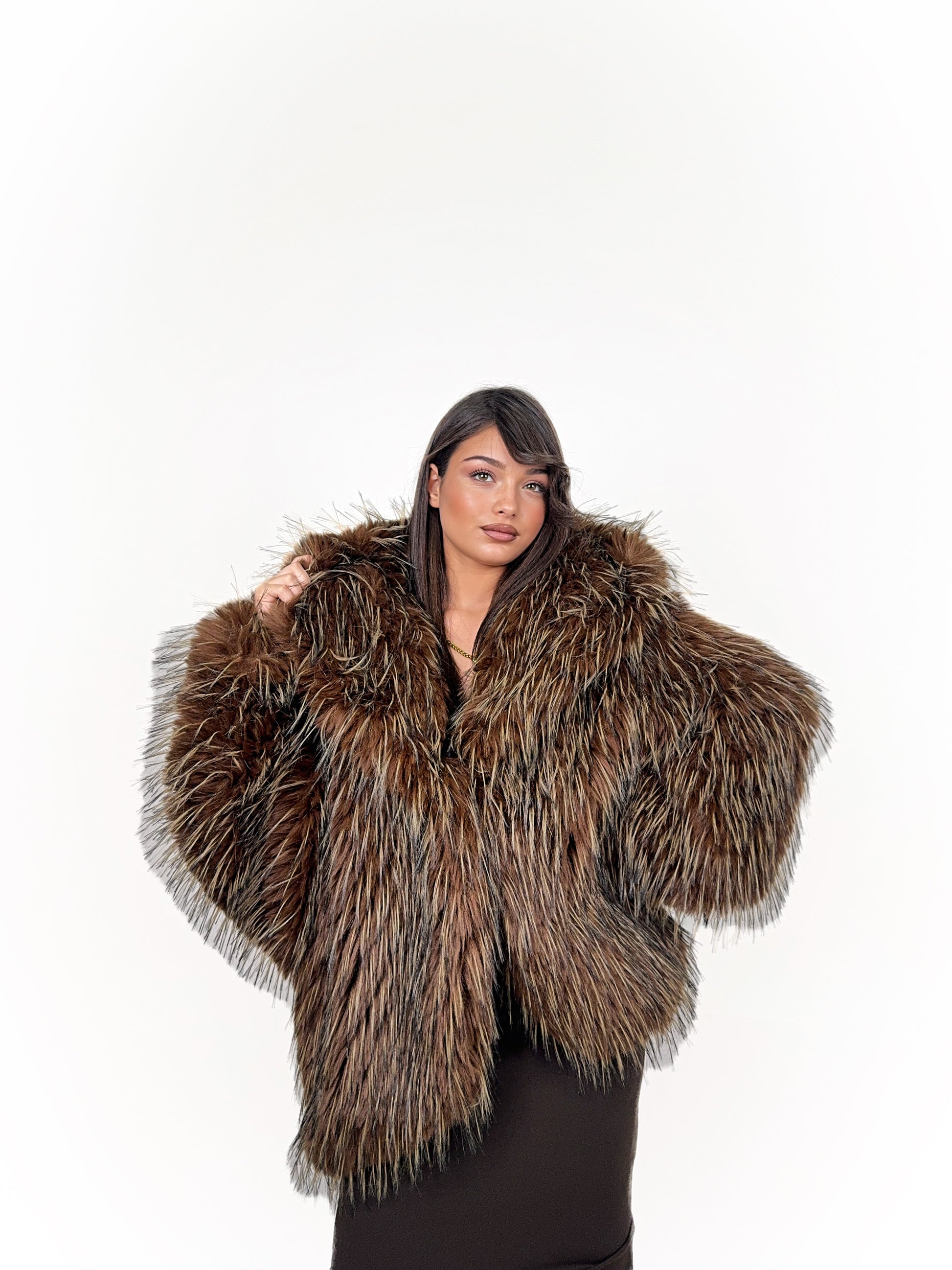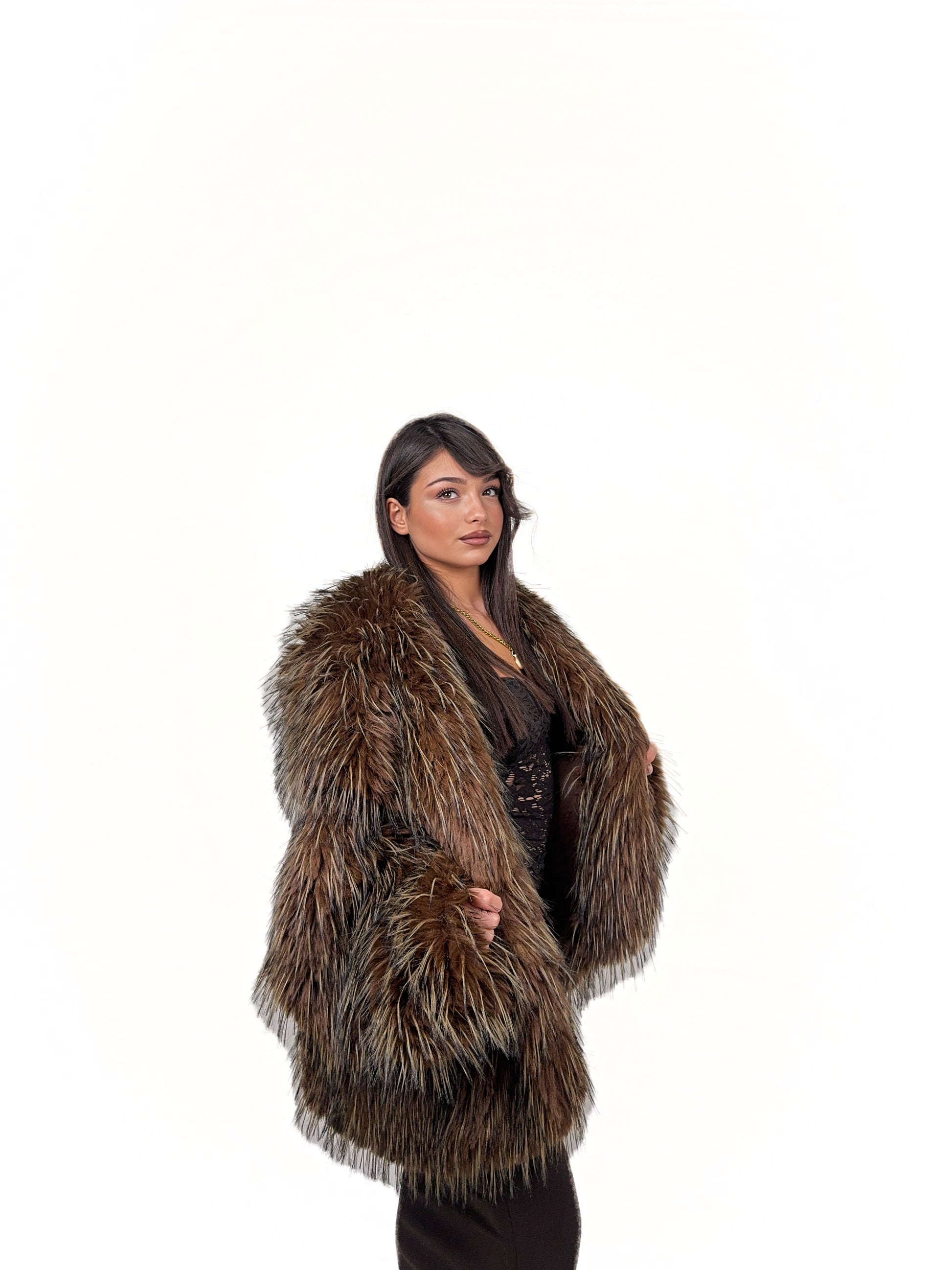 Pelliccia taglia unica, vestibilità da una S a una XL ricamato in doppio pelo