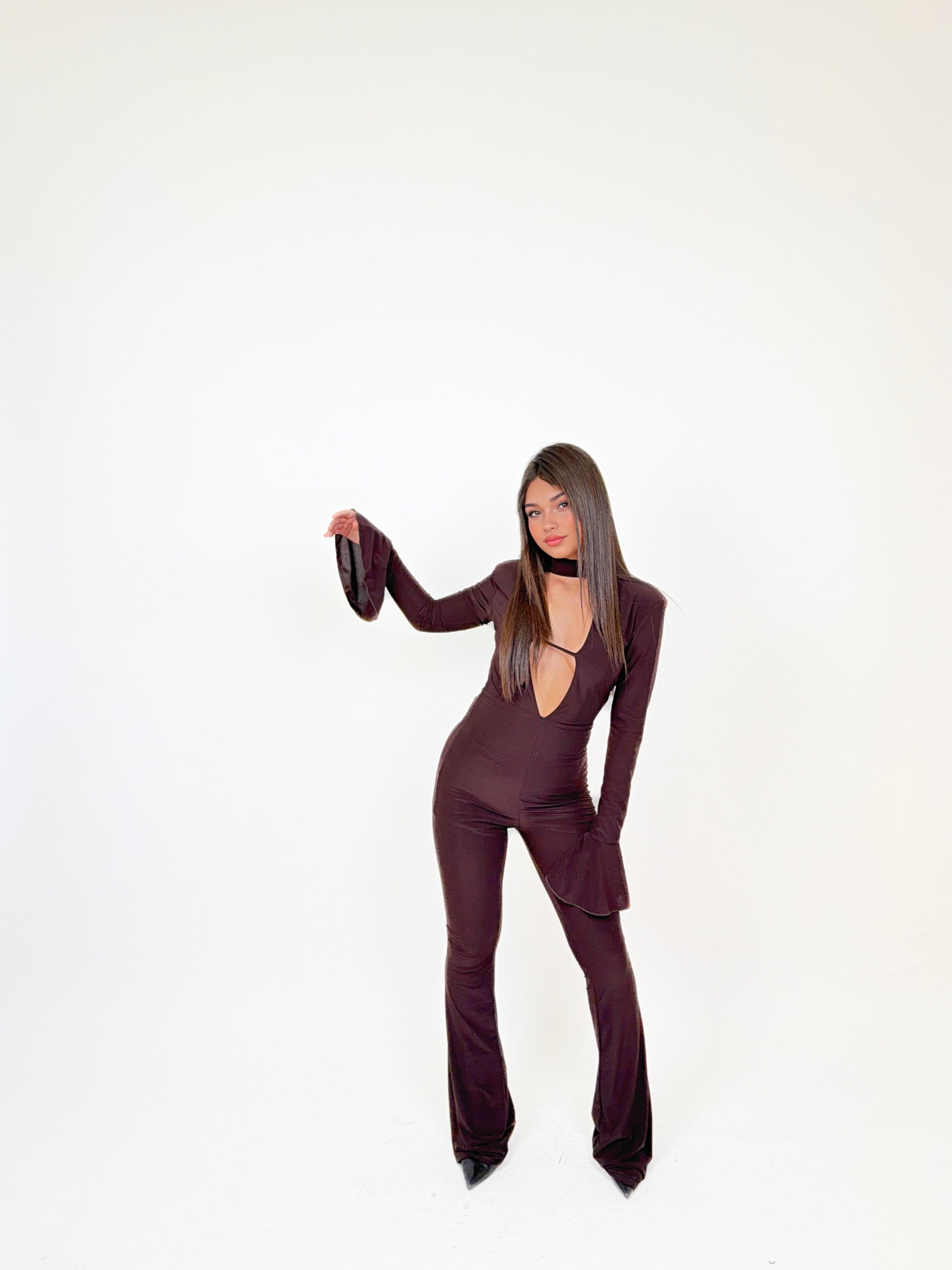 Questa tuta è il capo che ridefinisce la femminilità moderna: sensuale, elegante e con quel tocco di audacia che non passa inosservato. Realizzata in un tessuto elasticizzato che abbraccia le forme senza costringere, scolpisce la silhouette e slancia la figura grazie al taglio a zampa, iconico e sempre chic.